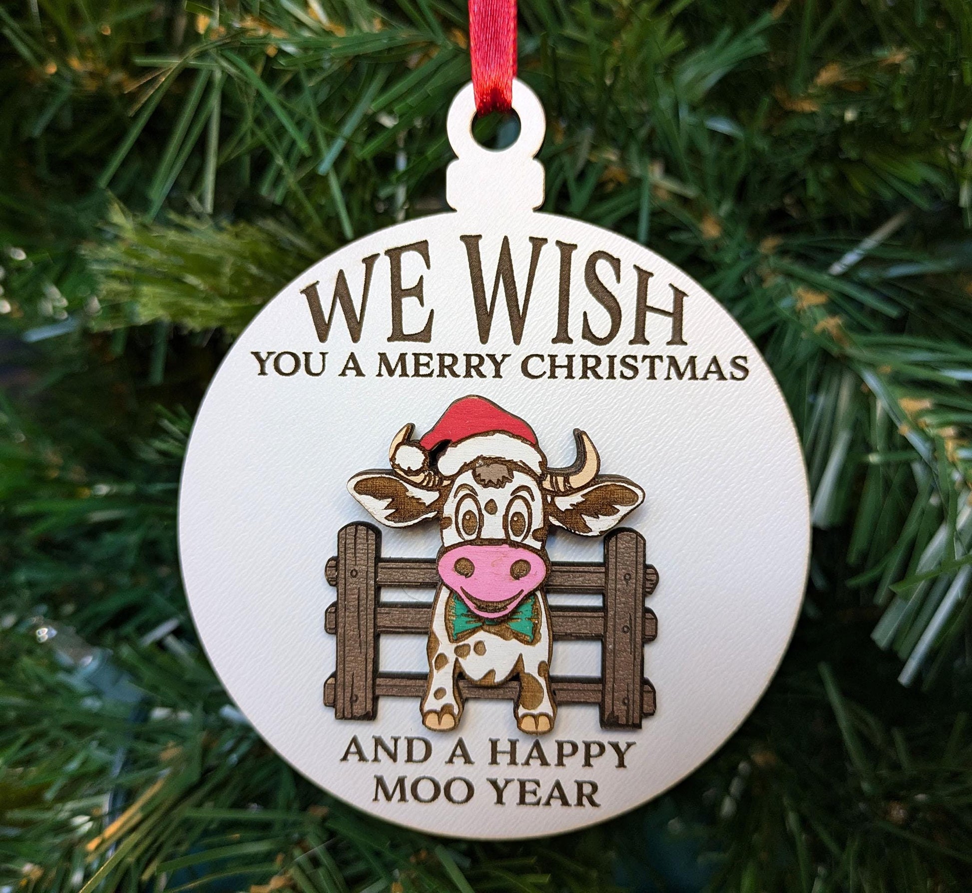 This cute and funny cow ornament is a perfect gift for somebody that is impossible to buy for! One of a collection of clever animal ornaments produced by Duck's Laser Den, this whimsical Christmas decoration will brighten up anybody's day, and your Christmas Tree!